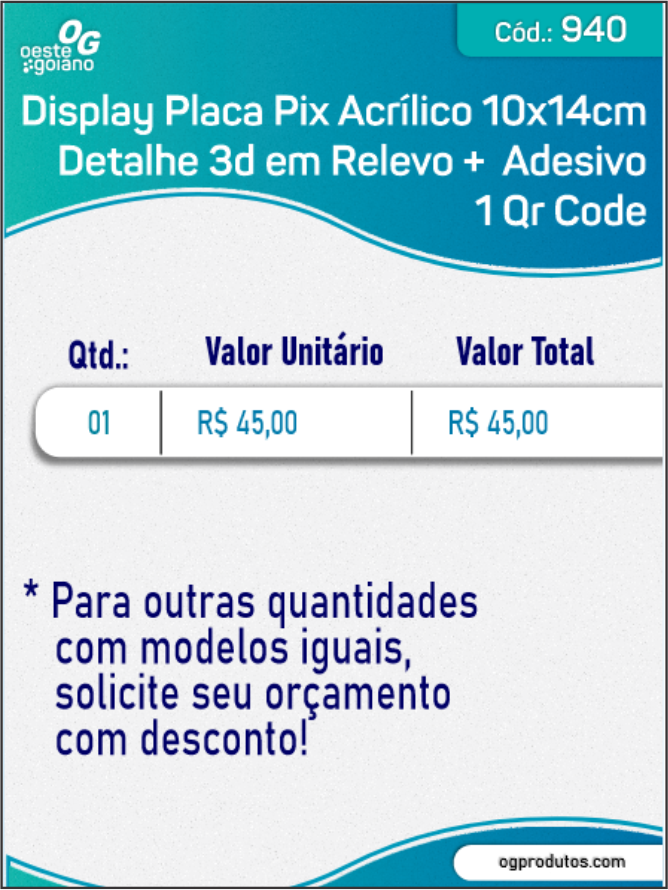 Oferecemos a possibilidade de personalização completa, permitindo que você adicione seu logotipo, informações de contato ou QR Code PIX, tornando cada plaquinha única e exclusivamente sua.